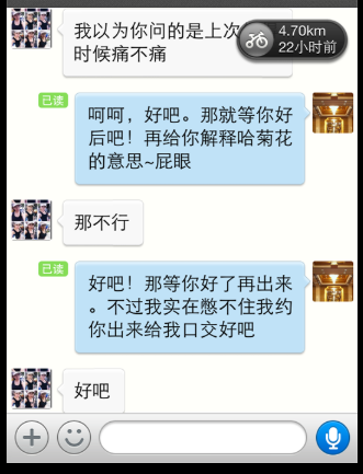我擦,看聊天记录,这帮妹子都是上赶着等着楼主干啊,照片里的妹子身材还都挺棒,楼主真牛比。学不来,哈哈